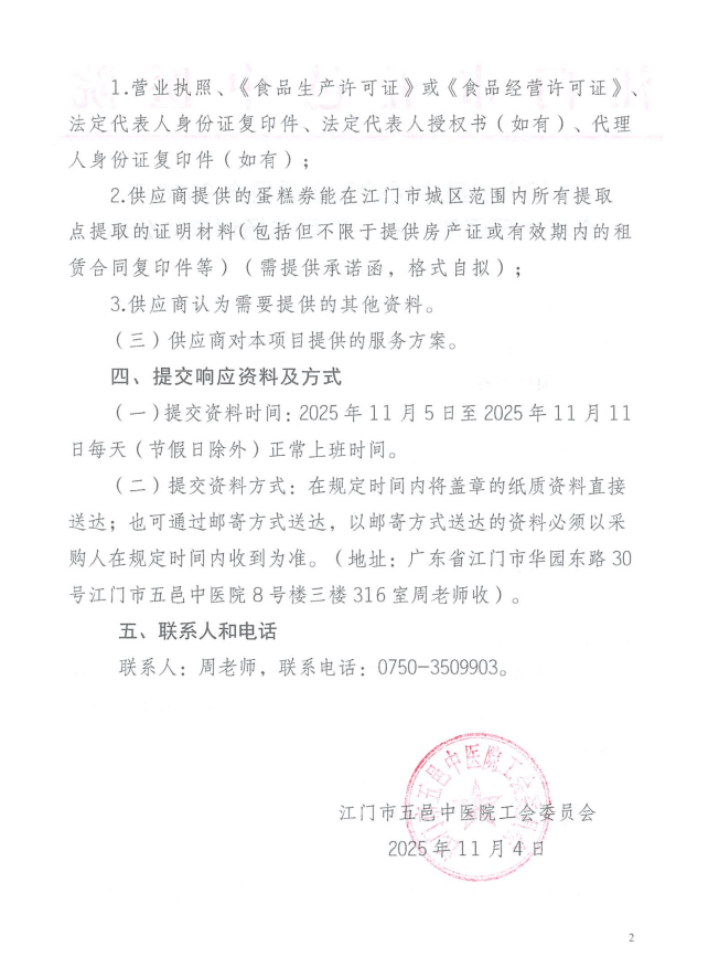 江门市五邑中医院工会委员会2026年会员生日蛋糕(券)项目市场调查的公告